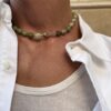 Collar de 38 cm aprox tipo choker compuesto por piedras naturales y cristal, cierre de acero inoxidable con alargador 7cm