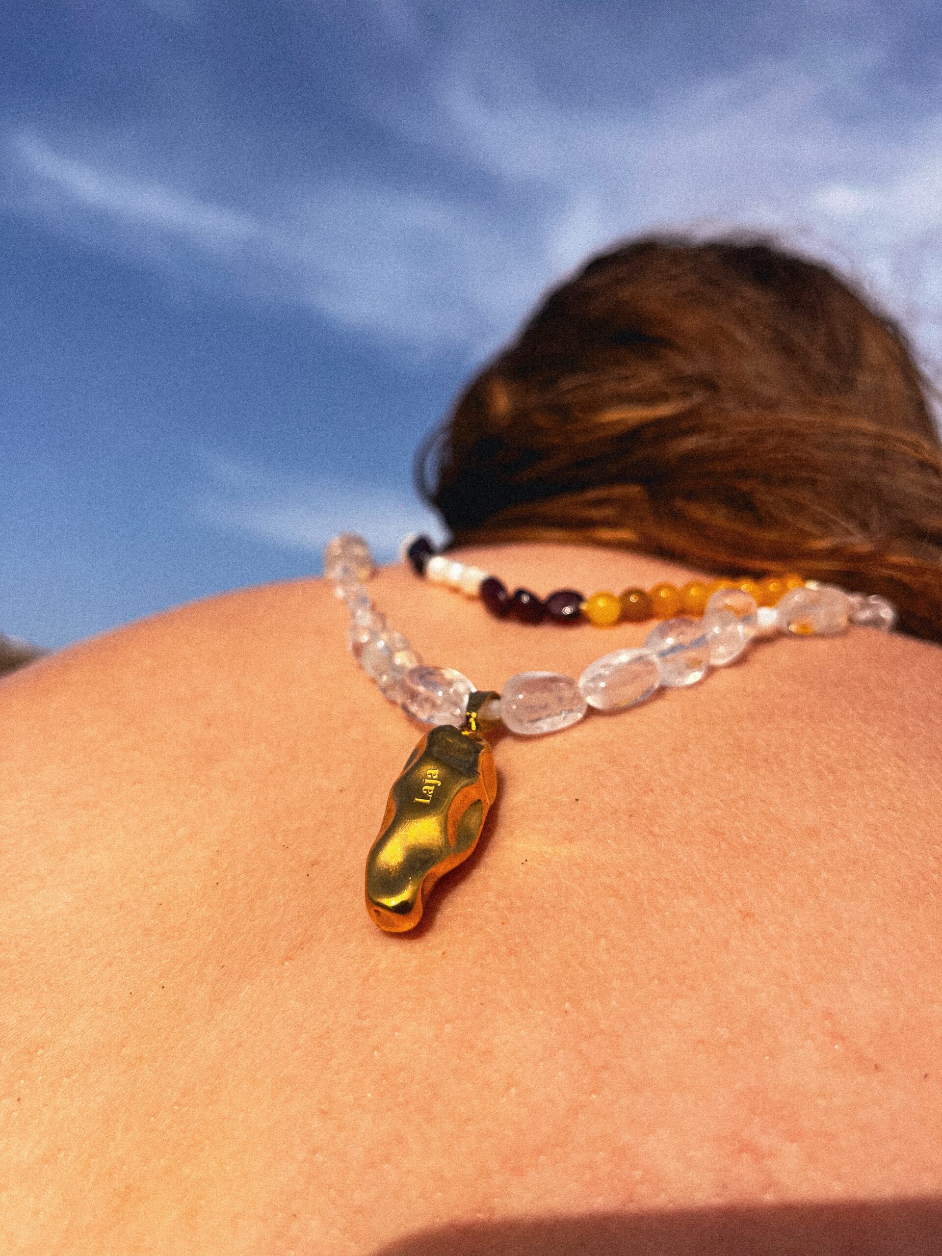 Collar de 42 cm aprox compuesto por piedras naturales y cadena de acero inoxidable que tiene un alargador de 7cm que te permite poder ajustar el tamaño.