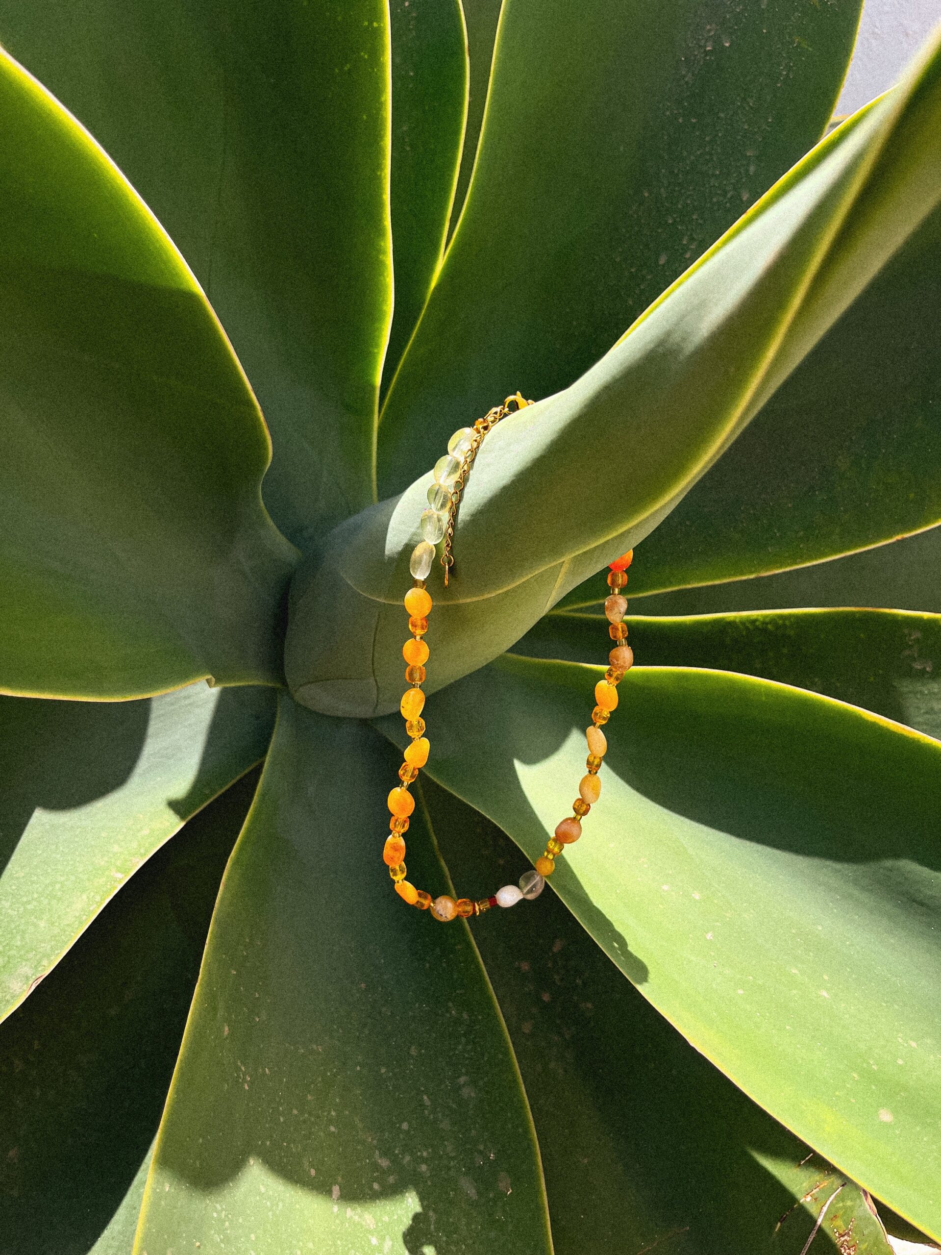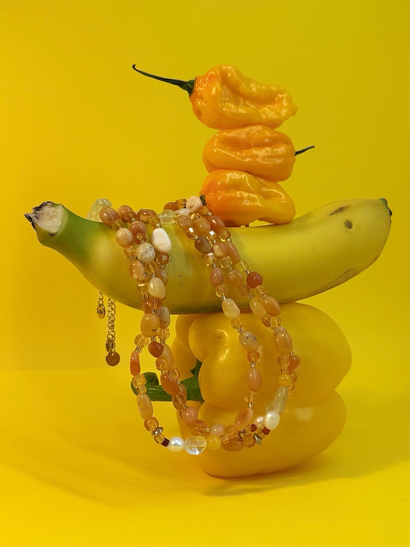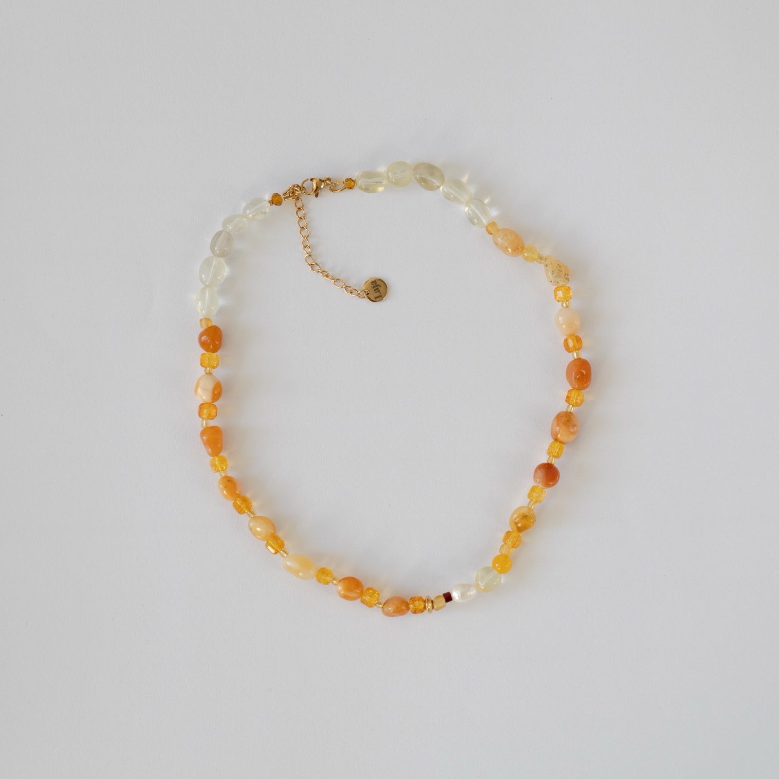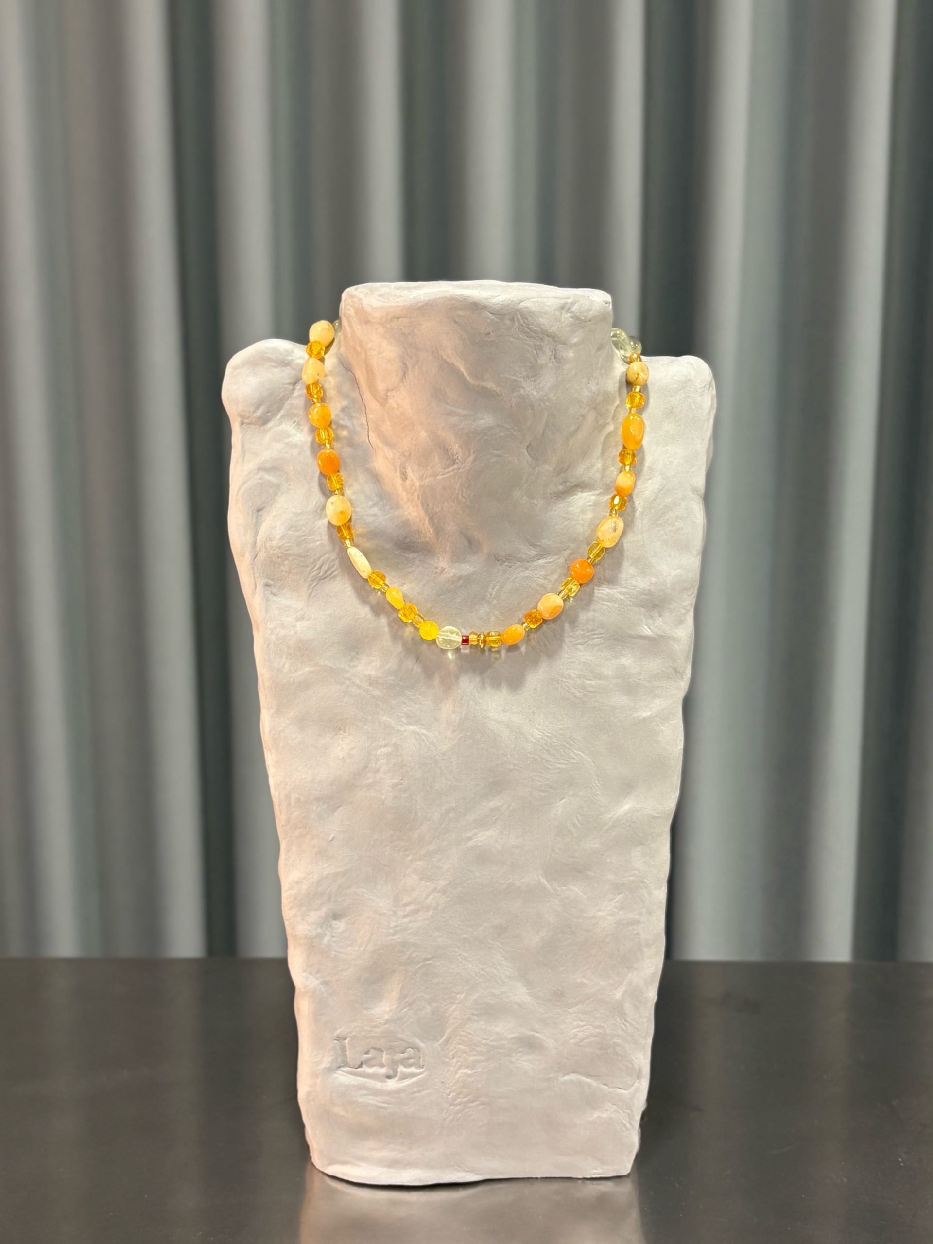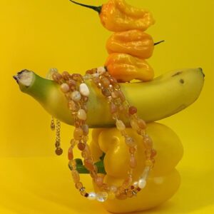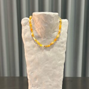 Collar de 40 cm compuesto por perlas, piedras naturales y cierres de acero inoxidable.