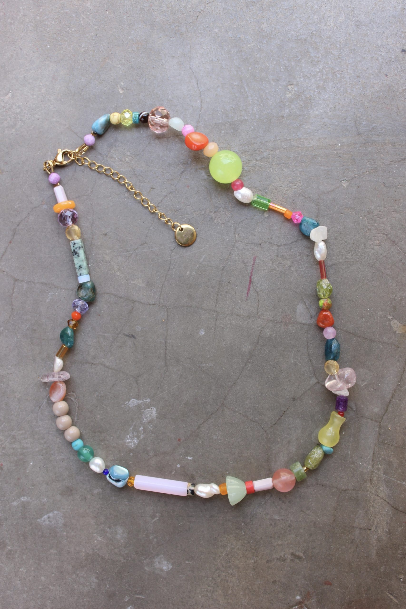 Collar de 40cm más alargador compuesto por piedras naturales, perlas naturales y piezas en acero inoxidable