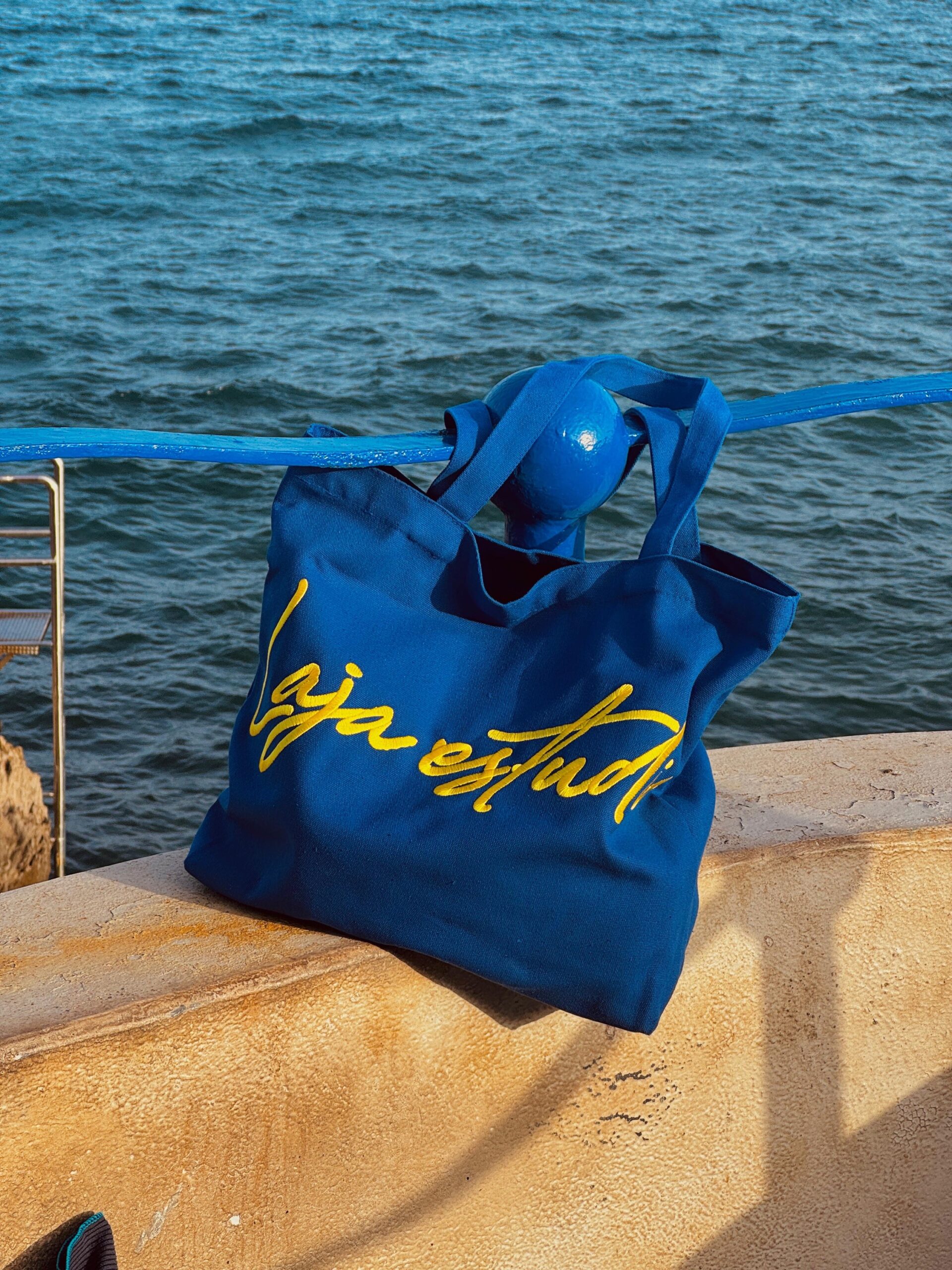 Tote de algodón con bordado Laja estudio islas Canarias.